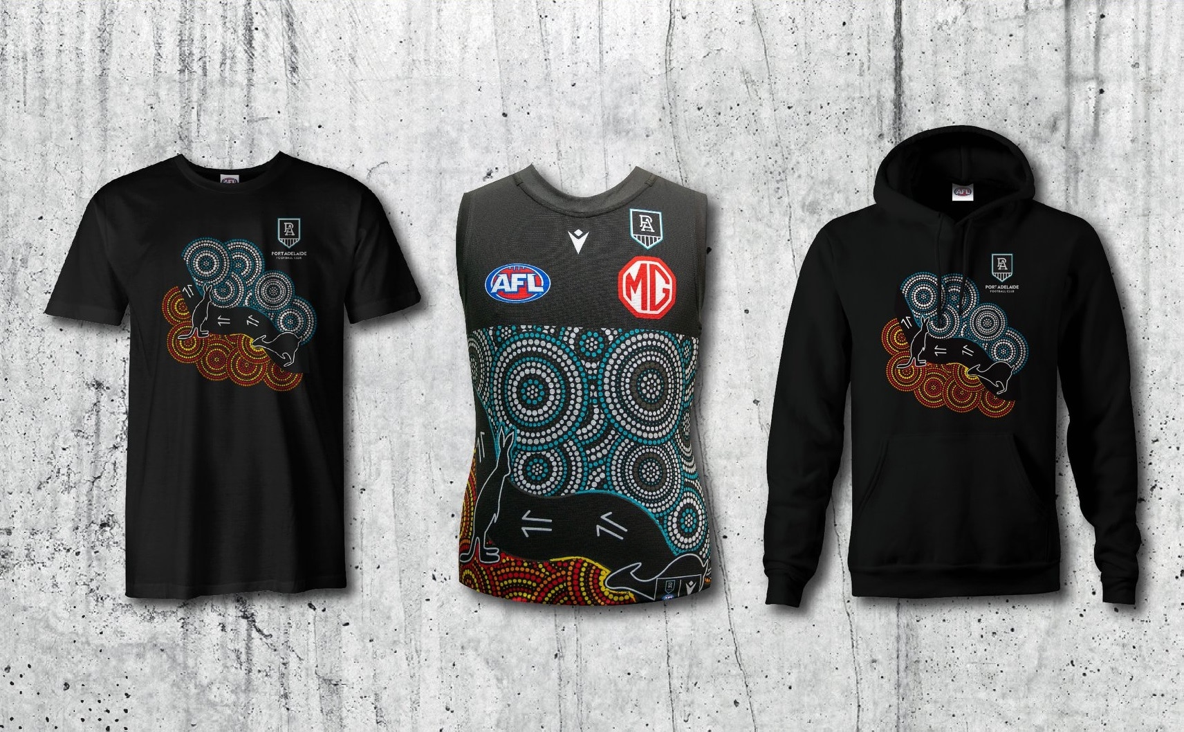 After the artist hit out at port adelaide on social media the club has accepted that campbell came up with the original design for a 2019 exhibition at flinders medical centre to port adelaide. Designed by renowned aboriginal visual artist elizabeth close and crows aflw player danielle ponter, the indigenous design will be proudly worn at all away games as well as during the inaugural aflw indigenous round.